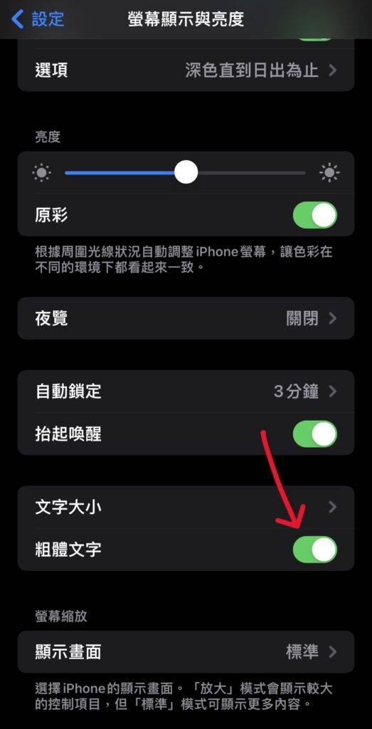 iphone 粗體文字Step 1 打開「設定」,並選擇「螢幕顯示與亮度」 Step 2 將「粗體文字」開啟即可 【分享】iPhone 如何將文字更改為粗體?超簡單馬上搞定!分享此文: 分享到 Facebook(在新視窗中開啟) Facebook 分享到 X(在新視窗中開啟) X
