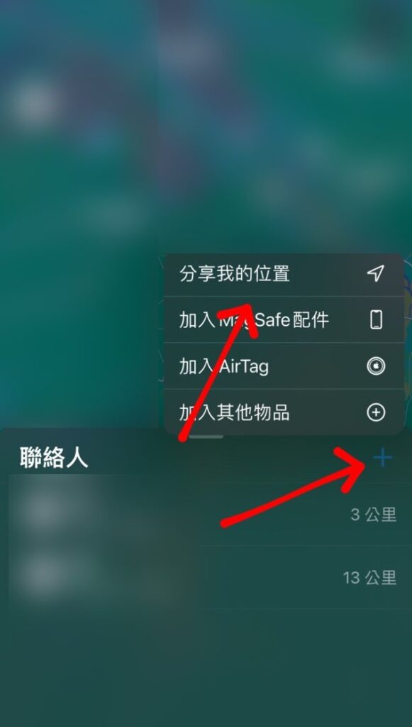 Step 2 在聯絡人點選「+」新增,並選擇「分享我的位置」