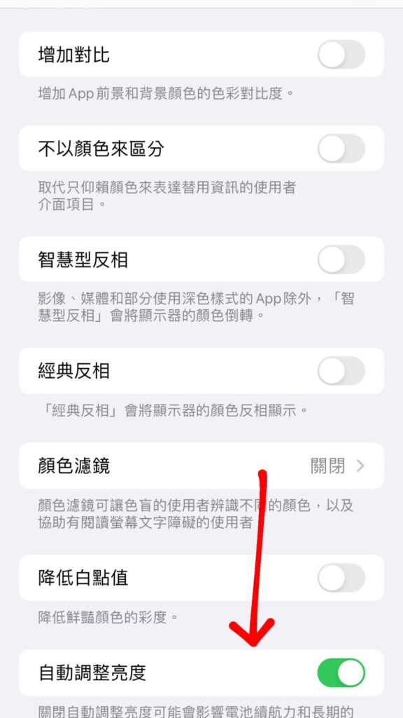 Step 3 滑到下方,找到「自動調整亮度」並開啟即可