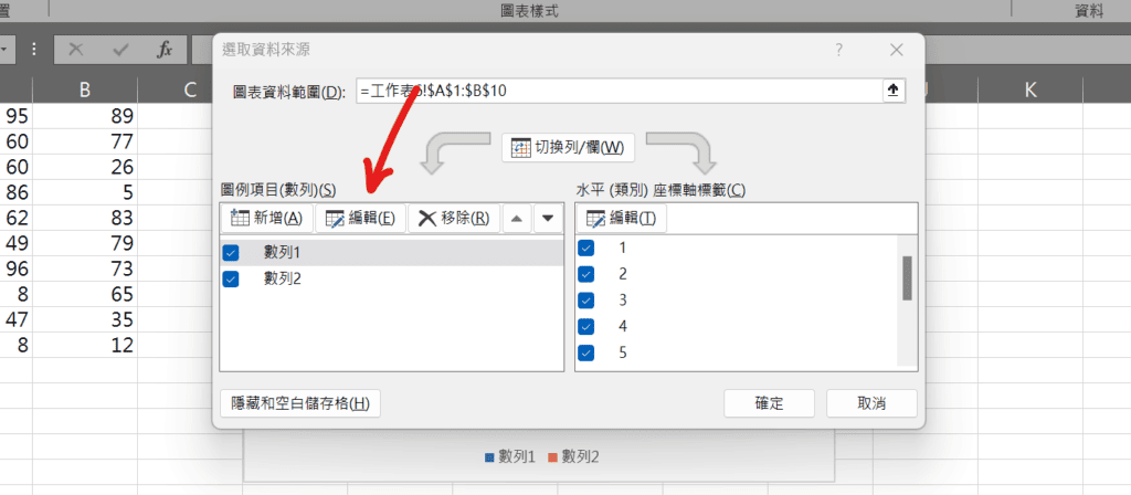 excel 圖表數列名稱 數列名稱顯示 數列名稱修改 圖例修改