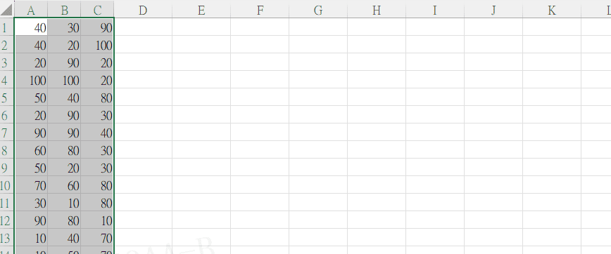 Step 1 選取你要平均分配的欄位(例如 A 到 C)