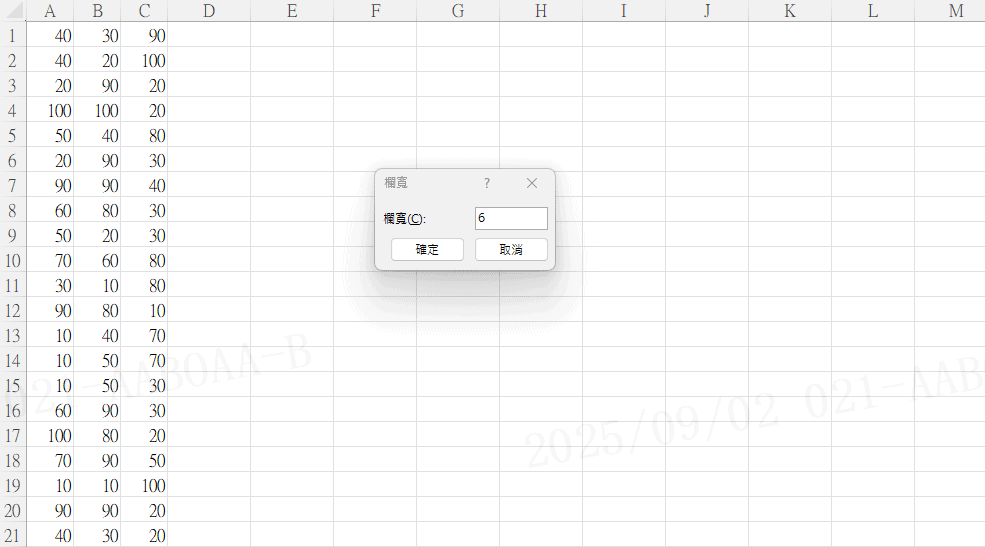 Step 2 輸入數值即可將欄位設定成相同寬度