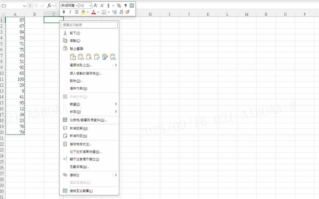 Step 1 複製你的原始資料(Ctrl + C),在目標儲存格上右鍵點擊