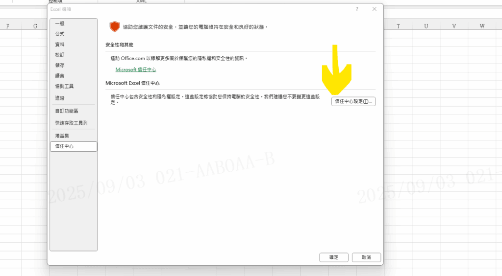 Step 2 在左邊功能列選擇「信任中心」內的「信任中心設定」