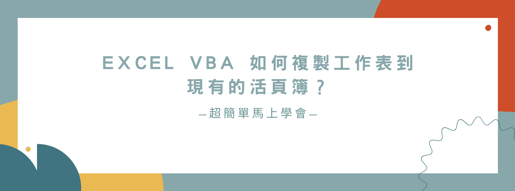【教學】Excel VBA 如何複製工作表到現有的活頁簿?超簡單馬上學會!