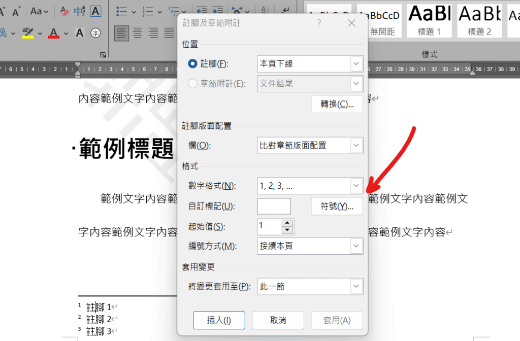 【教學】Word 如何在註腳前方加上星形、米字等符號?多種符號自行挑選!