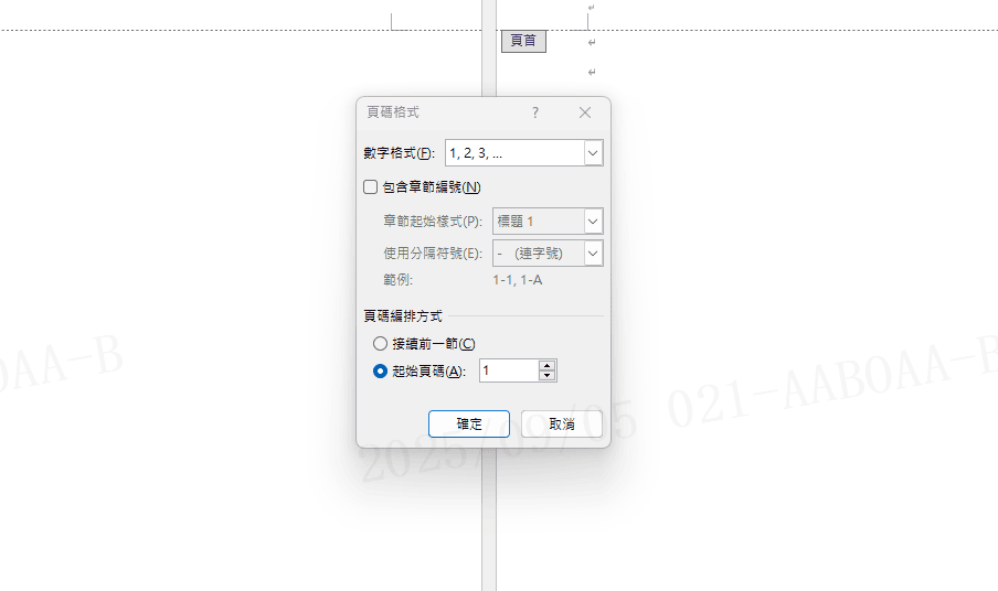 Step 5 在「起始頁碼」中輸入1,按下「確定」