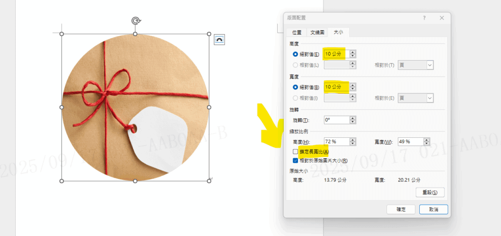 Step 3 在功能列「圖片格式」中大小選擇右下角箭頭「進階大小設定」