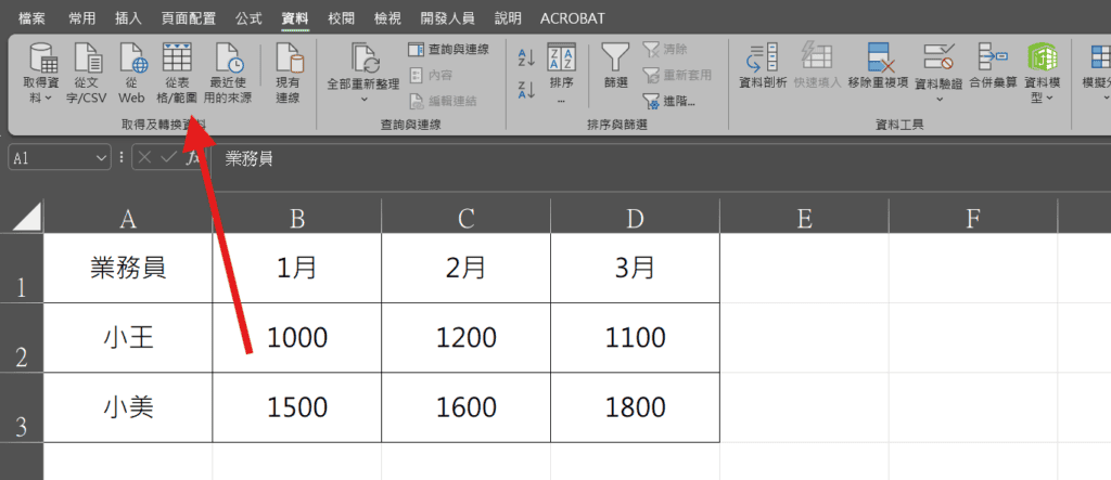 Step 1 首先,選取那張讓你頭痛的表格範圍,點擊 Excel 上方功能表的 「資料」 > 「來自表格/範圍」