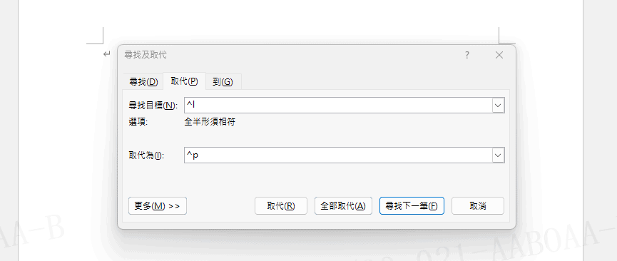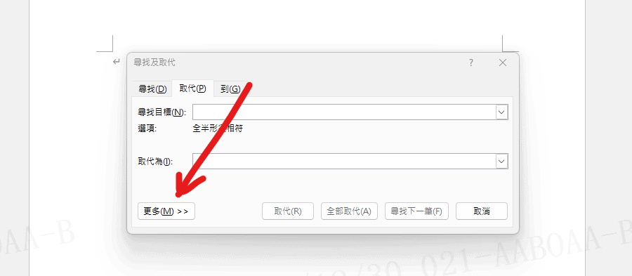 Step 1 在「尋找與取代」視窗中,點擊左下角的 「更多 (More)」
